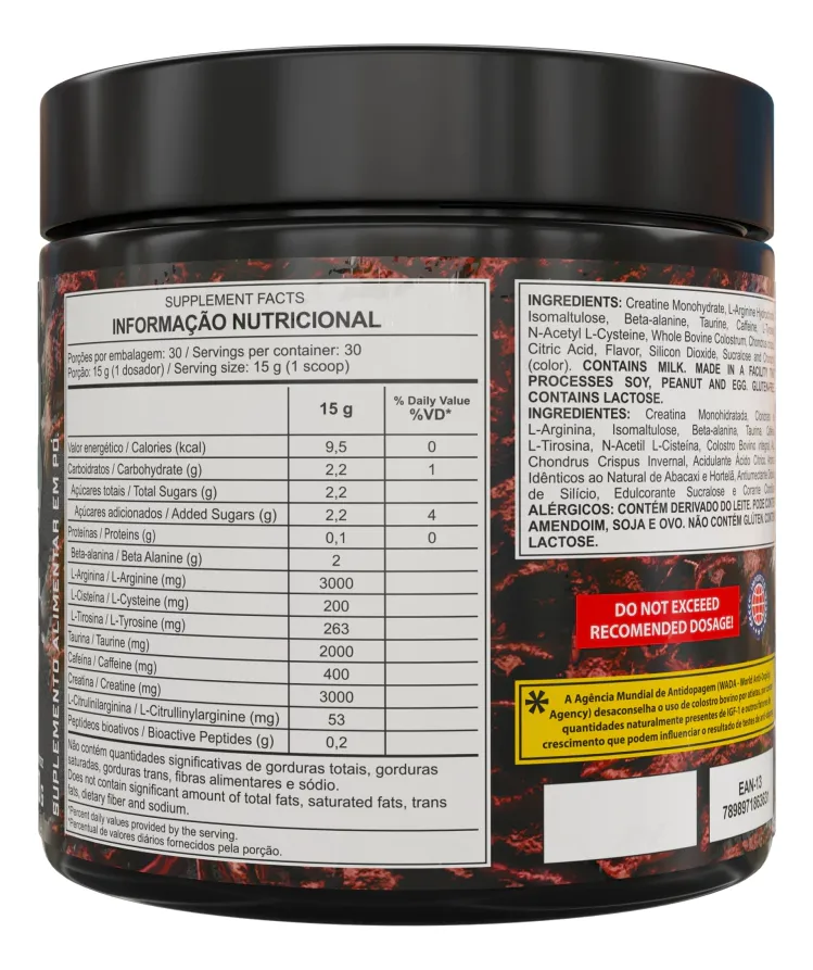 A Creatina é um suplemento que exige consumo diário e contínuo para saturar os músculos. Ao incluí-la no CARNAGE, você não precisa se preocupar em comprar um pote extra de Creatina para manter a dose correta de 3g.